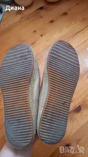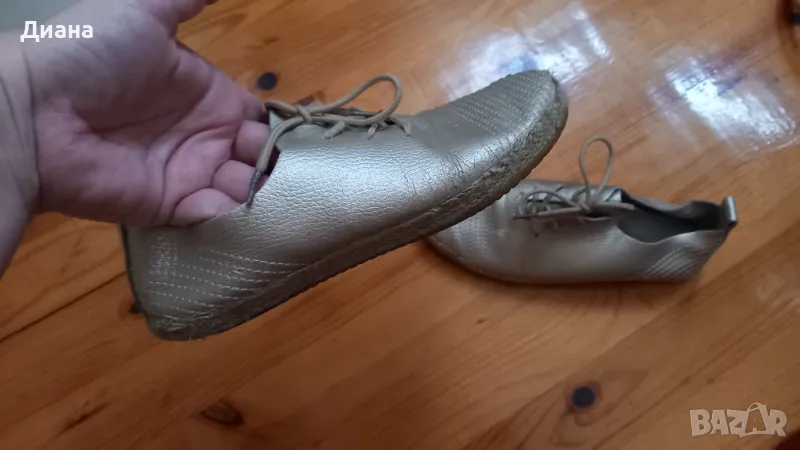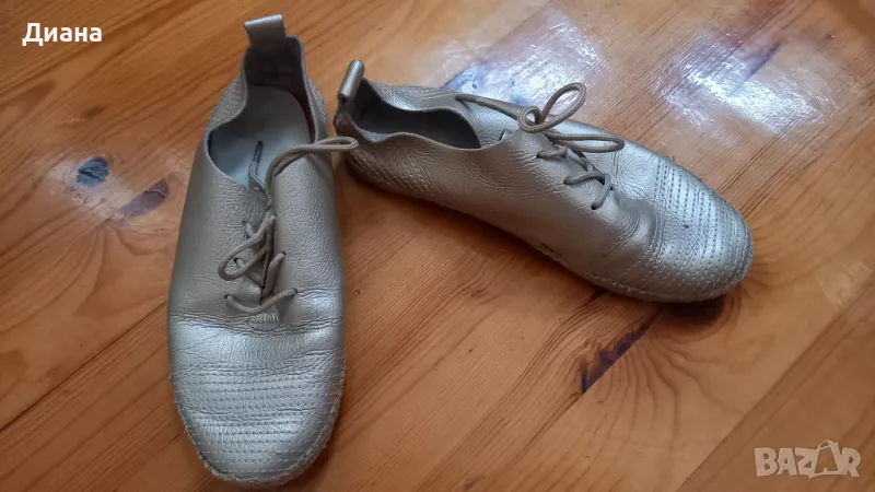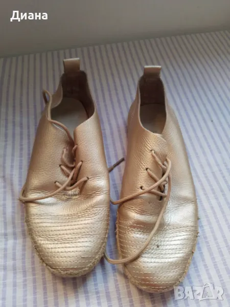 Удобни обувки от кожа със златисто покритие, които още могат да се използват. Запазени в прилично състояние, с козметични, но не и функционални забележки. Стелка 23см.