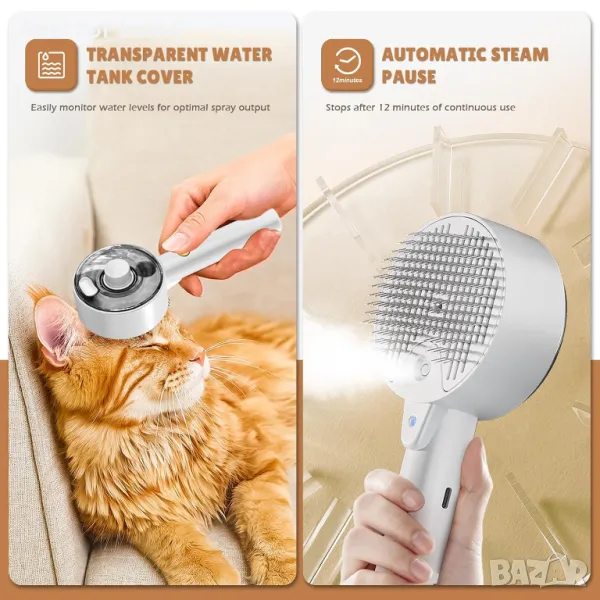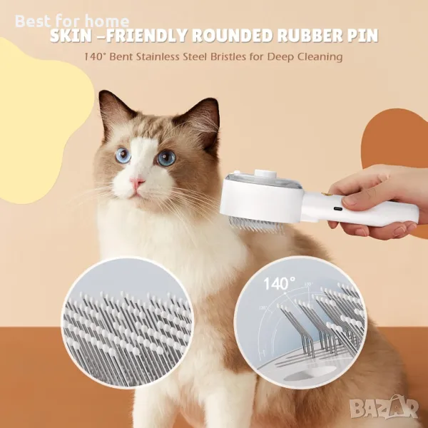 【Най-новата парна четка 4 в 1 за котки за линеене, самопочистване, подстригване и масаж от 2024 г.】Тази многофункционална парна четка за котки ефективно премахва разпуснатата козина и заплитания, като същевременно осигурява релаксиращ масаж и изживяване с грижа. Функцията за пара помага за контролиране на летенето на козината и намалява статичното електричество, оставяйки козината на вашия домашен любимец гладка и чиста. Забележка: Четката за котки Cloud Care създава мъгла, а не нагрята пара; за топла мъгла добавете топла вода. Перфектни четки за котки за домашни котки или четка за кучета за линеене.