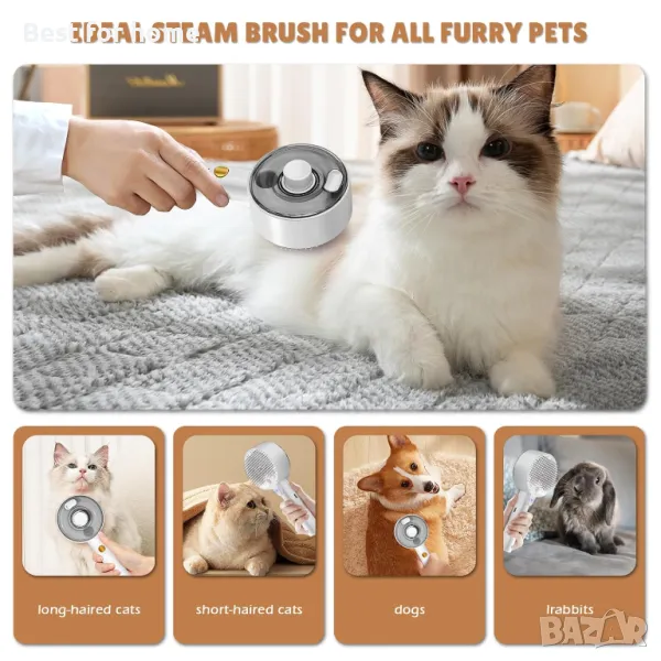 【Идеална парна четка за всички космати домашни любимци - перфектен подарък за собствениците на домашни любимци】 Най-новата четка за котки с пара за 2024 г. е предназначена за всички дългокосмести или късокосмести котки, кучета, зайци и други космати домашни любимци. Това е отличен подарък за собствениците на домашни любимци, като помага да поддържат палтата на техните домашни любимци в отлично състояние. Тази изпарена четка за котки е основно допълнение към всяка рутинна грижа за домашни любимци.