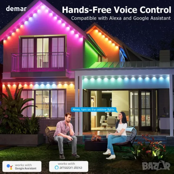 Умни външни светлини с 66 режима на сцена и 16 милиона цвята, управлявани чрез приложение или глас с помощта на Alexa и Google Assistant, предлагащи персонализирано осветление за празници и ежедневна употреба. Всеки светодиод осигурява силна яркост с широко покритие на стената, когато е поставен близо до повърхности. Проектирани за целогодишна употреба на закрито или открито, те са водоустойчиви, устойчиви на UV лъчи и работят при екстремни температури с живот до 50 000 часа. Монтажът е лесен с опции както за гладки, така и за грапави повърхности с помощта на лента или винтове.