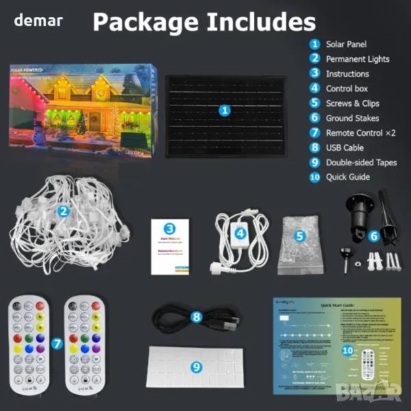 Соларни постоянни външни осветителни тела, интелигентни RGB Plus IC, 66 сцени, IP67, 15 метра