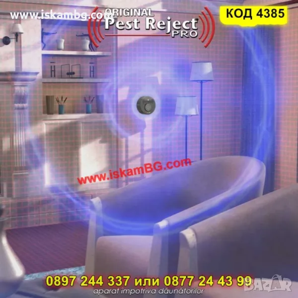 Широк спектър на действие: Прогонва мишки, плъхове, хлебарки, комари, мухи, паяци, бълхи, дървеници и други вредители