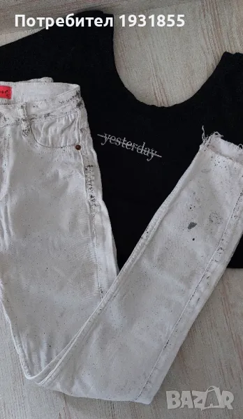 Бели дънки със напръскан ефект (размер-xs)
