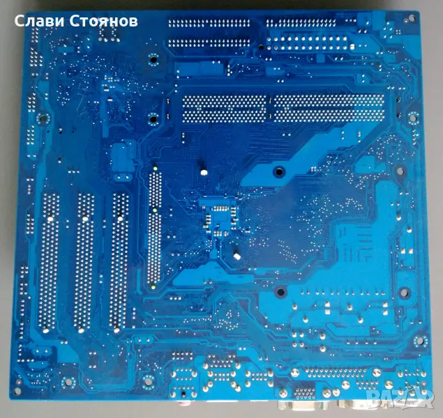Gigabyte GA-8VM800M-775(rev. 1.0), Socket LGA 775, Chipset P4M800/VT8237R. В добро състояние, няма надути или изтекли кондензатори, няма изкривени или счупени пинове по сокета, всичко по платката работи(вградени видео,звукова и мрежова карти, usb портове, DIMM слотове, и т.н), сменена термопаста на радиаторa на северния мост на чипсета, сменена батерия на биоса. Дъното е с качена последна версия на биоса F9 (вижда се на снимките). Оригиналната метална задна планка (io shield) не е налична, като алтернатива предлагам 3D принтирана версия от PLA. При желание от ваша страна мога да я принтирам в черен, червен или сив цвят. Доставка със Спиди или Еконт, отстъпка 10% от цената на доставката. За София може лично предаване както и тест на място.