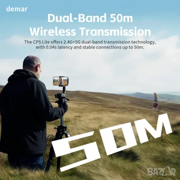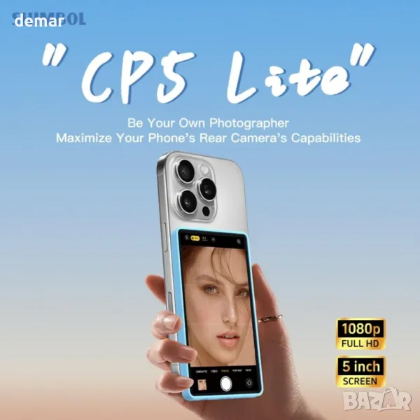 Разполага с 5-инчов Full HD дисплей с резолюция 1080P за създаване на видео и снимки с професионално качество, плюс преглед на живо за по-добър контрол. Сдвояването с едно щракване прави връзката с телефона мигновена, а WiFi предаването до 50 метра с ултраниска латентност (0,04 секунди) осигурява плавно видео в реално време дори от разстояние. Предлага се с магнитен калъф за лесно монтиране и допълнителна защита срещу ежедневни повреди. Включва Bluetooth управление на затвора за снимане със свободни ръце, идеално за селфита, групови снимки и дистанционно снимане.