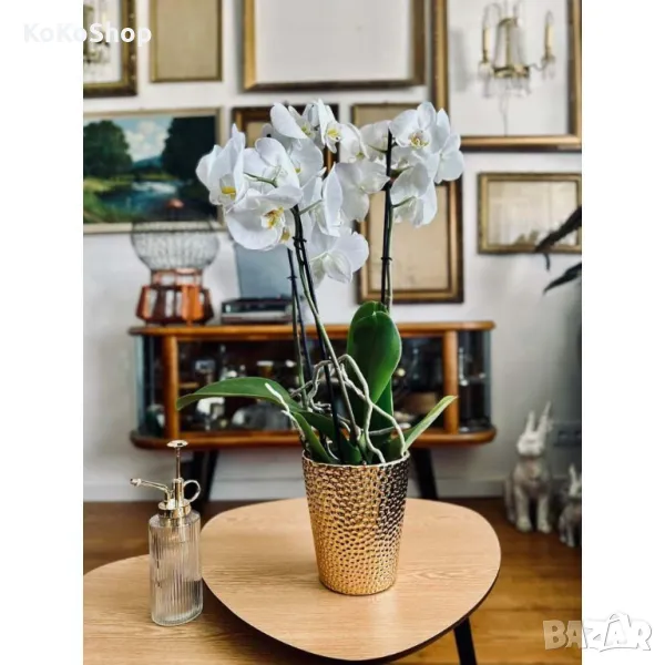 Кашпа за орхидеи-13х13х15 см./златиста кашпа/саксия → Обява 49872431