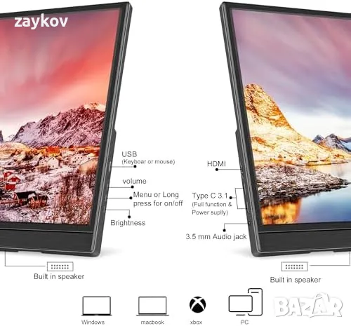 ШИРОКО СЪВМЕСТИМ Оборудван с два напълно функционални USB Type-C 3.1 порта и един HDMI порт, този монитор е съвместим с лаптопи, PC, Mac, смартфони, Xbox, PS5, Switch,