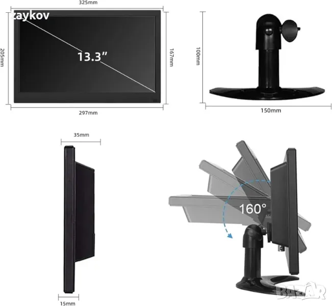 Висококачествена картина] 13,3-инчовият монитор с HD разделителна способност 1366 x 768 пиксела и съотношение на страните 16:9 осигурява зашеметяващи висококачествени изображения с отлични детайли, което не само повишава ефективността на работата на потребителя, но и осигурява отлично удоволствие от гледането.