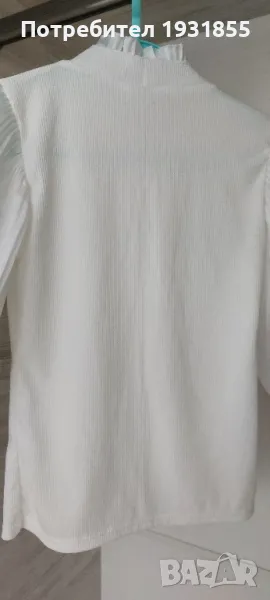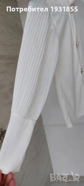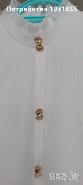 Бяла,нежна блуза с елегантен рипс,златни копчета за декорация,