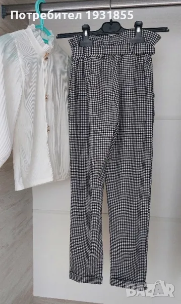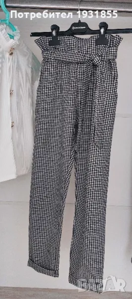 Елегантен панталон с десен на черно -бели квадратчета.Висока талия с ластик-40см разтегателност,колан-137см ,два предни джоба, размер(xxs)