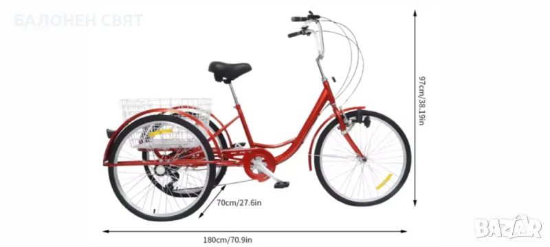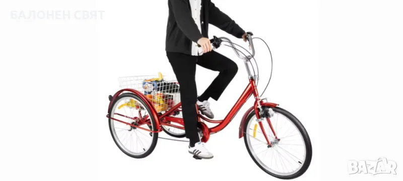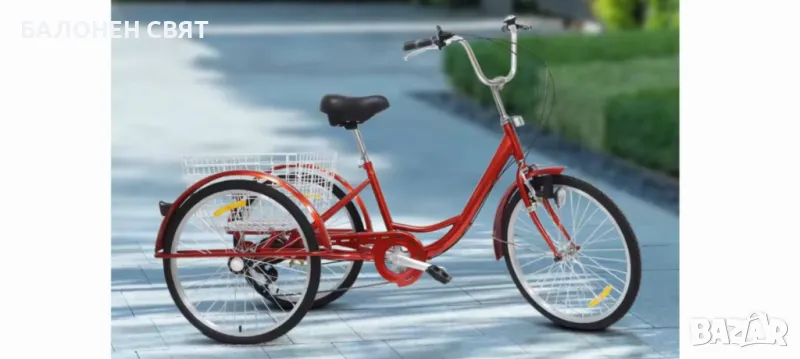 Нов автомобилен цвят Бордо - Триколка 24 цола 6 скорости Семейна Триколка