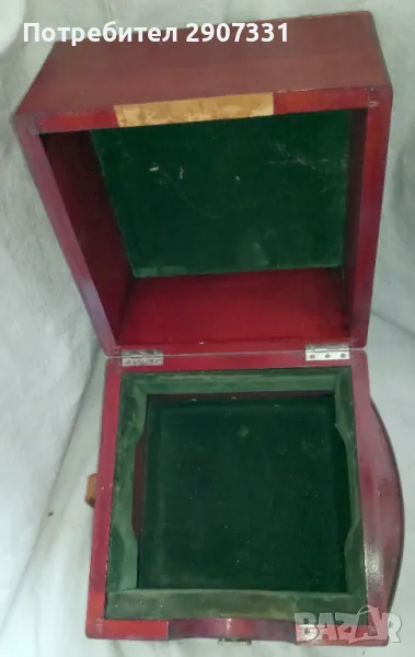 дърво. размери 24х25х25 см. Горната част вероятно е залепена. мека вътрешна подплата. състоянието е отлично. Изпращам по Спиди или Еконт. Лично предаване