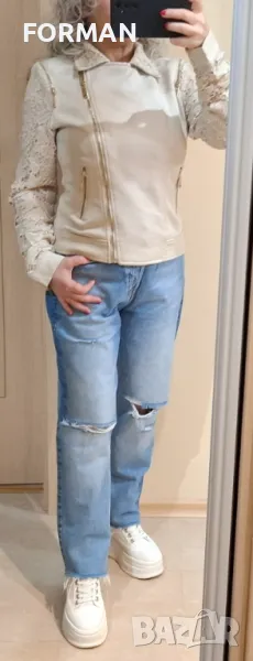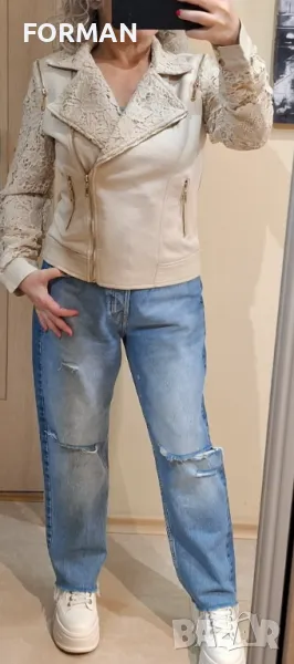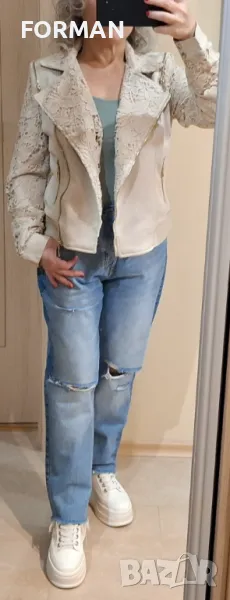 СТРАХОТНО светлобежово яке с дантела по ръкавите → Обява 49875305