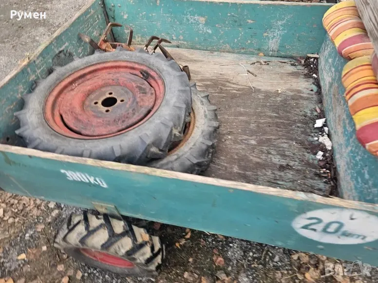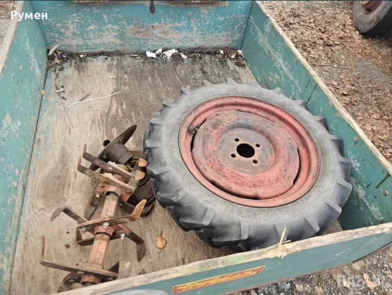 Немски мотоблок с ремарке мотички за фреза и още един чифт гуми