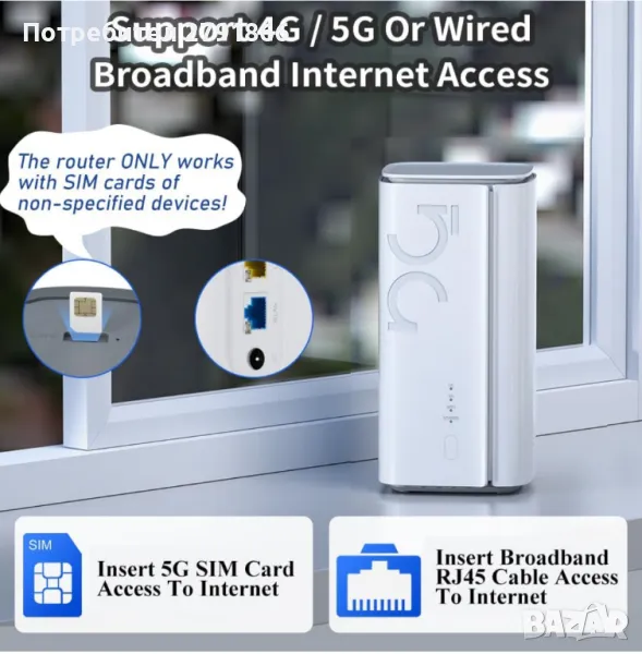 UOTEK 5G CPE рутер със слот за SIM карта, NSA SA WiFi 6 5G Двубандов клетъчен модем