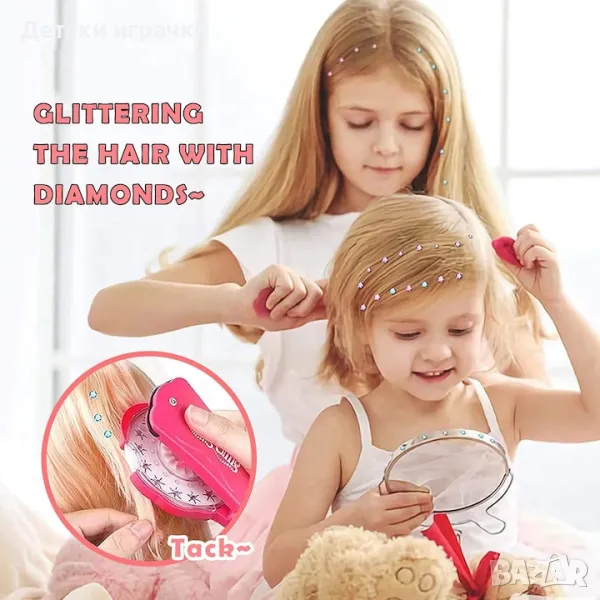 Комплект устройство за оформяне на косата с кристали, креативна играчка за ролеви игри, която подобрява въображението, креативността и двигателните умения.