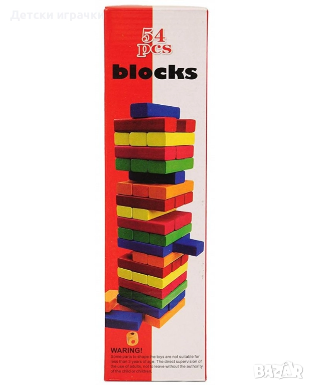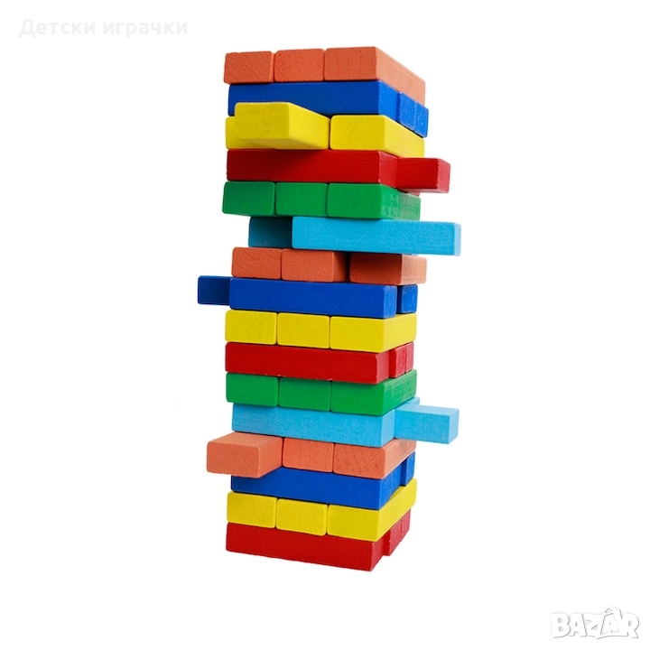 Дървена Дженга с 54 дървени цветни кубчета