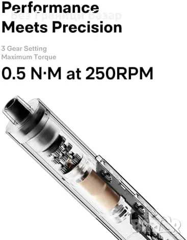 3 настройки на въртящ момент (0.1/0.35/0.5 N.m) – автоматично спиране при достигане на зададено ниво