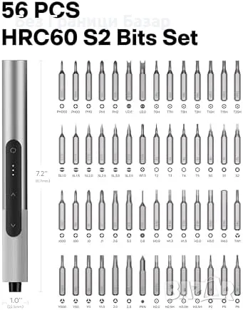 56 накрайника от S2 стомана (HRC60) – идеални за телефони, лаптопи, очила, PS5 и др.