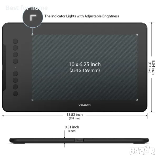 10x6.25", 8 бутона, 8192 нива на натиск, Включва, Ръкавица, Pen-Stand, 8 резервни върха