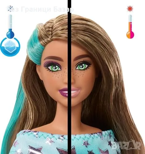 Цветна трансформация с вода – блясък по лицето на Барби и очи на кученцето, които се отварят и затварят