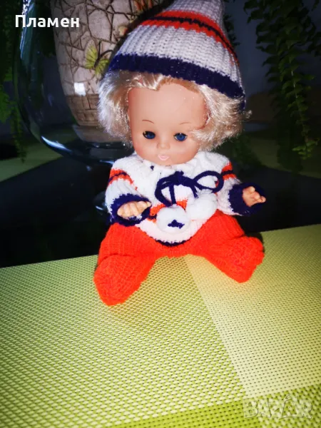 Малка ретро кукла с оригиналните си дрехи и шапка.