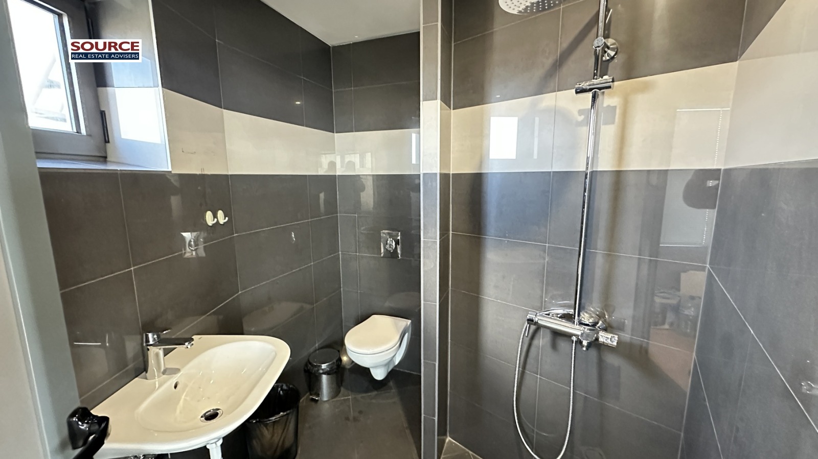 2. Разпределение: 1 голямо Open space помещение, 1 отделно работно помещение преградено със стъклени преградни стени, оборудван кухненски бокс, wc с баня. Офисът може да бъде изцяло с Open space разпределение или допълнително преграден според изискванията на Наемателя.