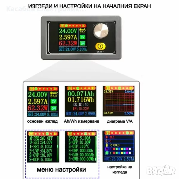Табло за лабораторно захранване 0.6V-36V 5A 80W с цветен дисплей и много широки функционалности. Модулът може да се захранва с напрежение в от 6V до 36V DC и ще ни позволи да получим изходно напрежение в пълния диапазон от 0.6V до 36V DC. Модулът ви позволява както да намалявате, така и да увеличавате напрежението спрямо входа. При ток от 1A и температура под 50°C, захранването работи безшумно, ако е необходимо, вентилаторите се активират, а активното охлаждане бързо намалява температурата до безопасно ниво, което влияе положително върху живота на компонентите.