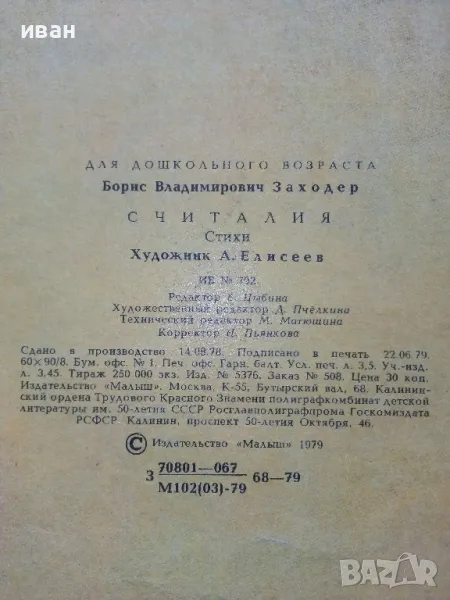 Считалия - Борис Заходер - Издателство "Малыш"- 1979г. → Обява 49878705