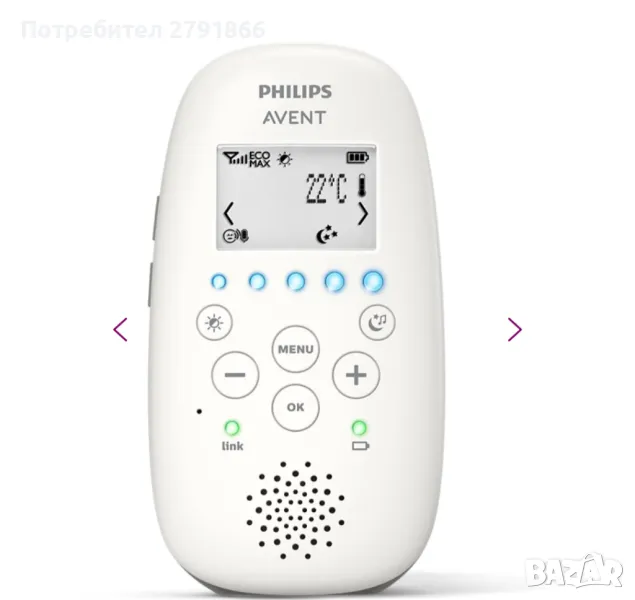 Уникалният режим Smart ECO автоматично минимизира аудио предаването и увеличава времето за работа на батерията. Колкото по-близо сте до вашето бебе, толкова по-малко мощност е необходима за перфектна връзка.