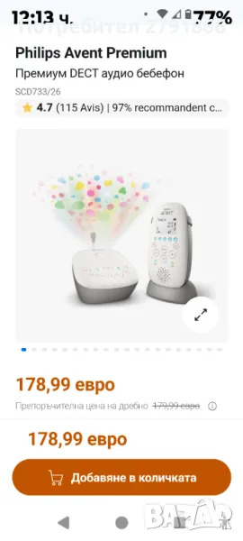 Бебефон SCD733 DECT осигурява пълен комфорт по всяко време благодарение на кристално чистия си звук и разнообразие от успокояващи и успокояващи функции. Вашето бебе ще хареса звездния прожектор за нощна светлина!