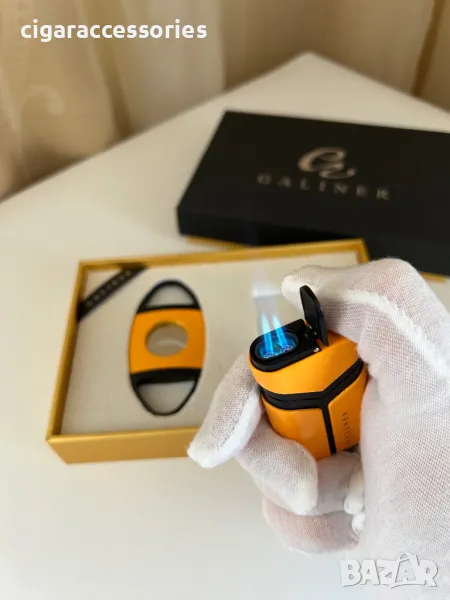 Подаръчен комплект GALINER – Запалка с два пламъка + ножичка за пури