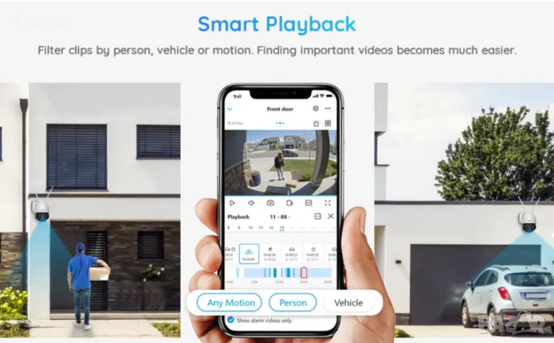 ИНТЕЛИГЕНТНО ОТКРИВАНЕ И АВТОМАТИЧНО ПРОСЛЕДЯВАНЕ: Точно открива движението на хора, превозни средства и животни от други обекти, като значително намалява фалшивите сигнали. След като цел бъде открита, камерата автоматично проследява пътя й, като ви информира.