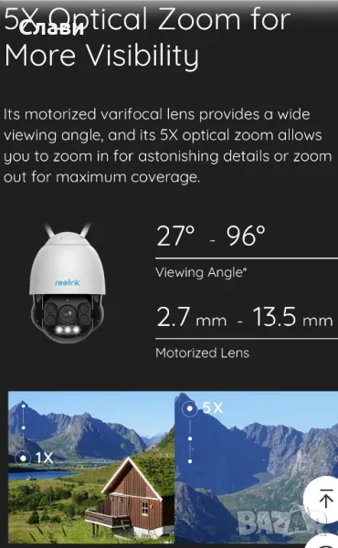 5X ОПТИЧНО УВЕЛИЧАВАНЕ И 3D УВЕЛИЧАВАНЕ: Подобрете изживяването си при гледане на живо с иновативната функция за 3D увеличение, която позволява незабавен фокус върху определени области без многократно щракване. Сега можете без усилие да уловите и поставите целта си в центъра на екрана.
