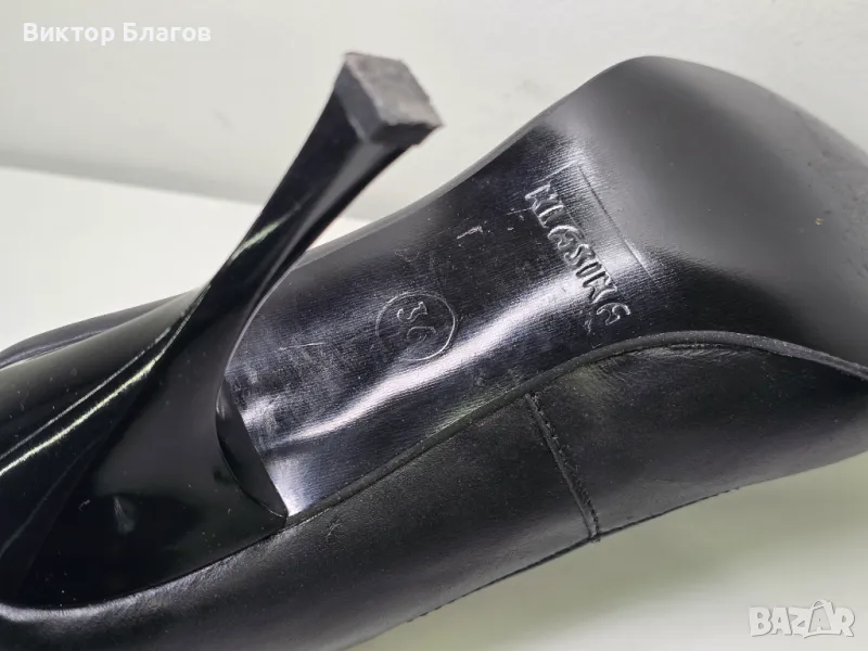 Klasika черни обувки с висок ток от естествена кожа. Носени са само веднъж за повод, след това са стояли прибрани, но вече са малки и за това се продават.