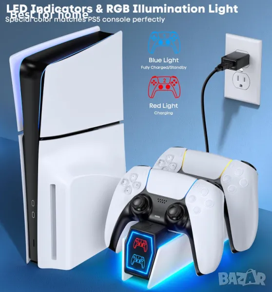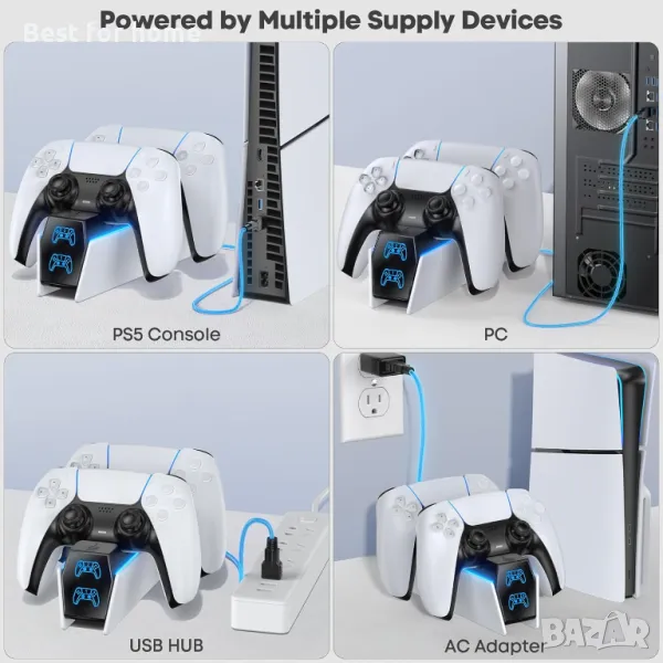 Подходящ за PS5 и PS5 Edge контролери: Тази зарядна станция за PS5 контролер е специално проектирана да се свързва с определен променливотоков захранващ адаптер и да зарежда два PS5 контролера едновременно. Това е задължителен PS5 аксесоар за PS5 контролер. Задържайки ви в игрите по-дълго с конзолата Playstation 5, този комплект аксесоари за PS5 е най-добрият заместител на официалната станция за зареждане на безжичен контролер OEM PS5 Dualsense.