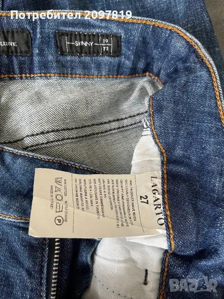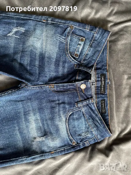 Дънките са обличани само веднъж, като нови. Два чифта, размер 27. Цвета е тъмно син. Снимките са реални. Цена за един чифт 65 лв.