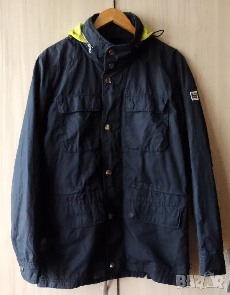 Якето има качулка и има четири джоба отпред.