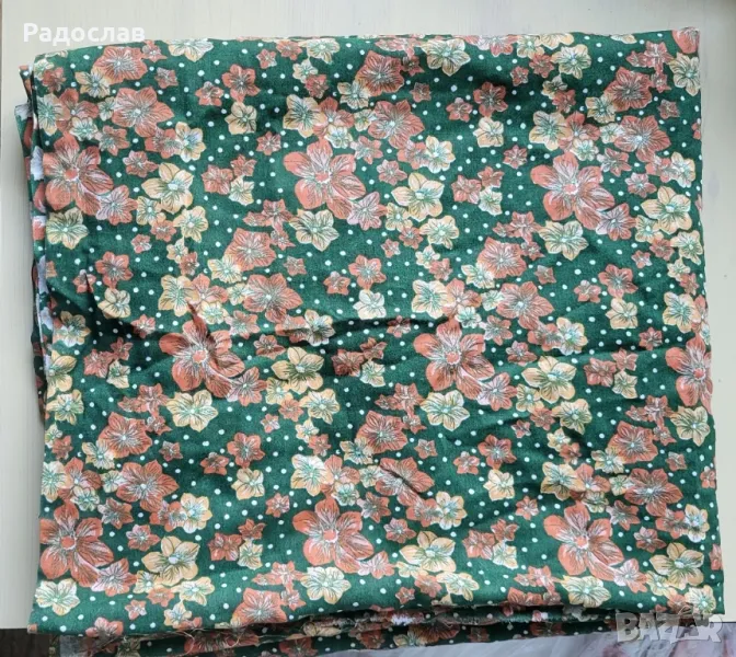 1. Продавам плат памучен зелен с цветя (62-
