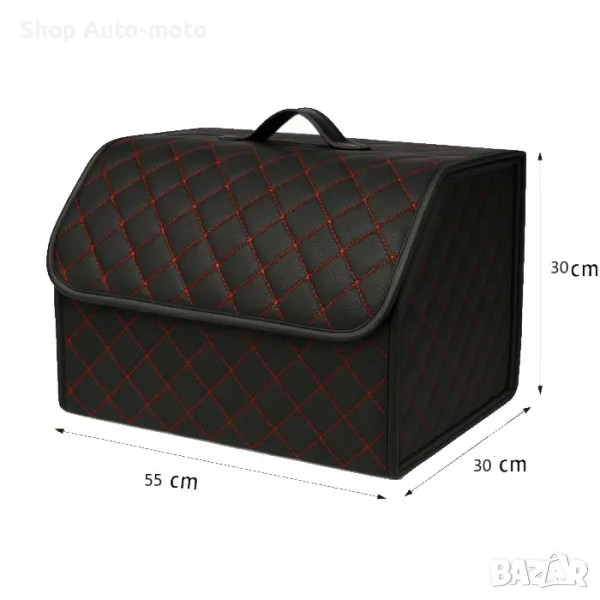 Стилен кожен органайзер за багажник с червен шев 55x30x30см.