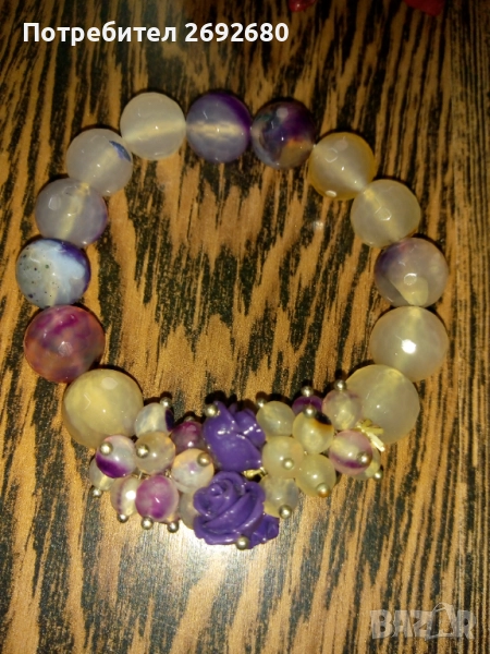 Гривна от люляков аметист с лилави цветчета - 45лв.