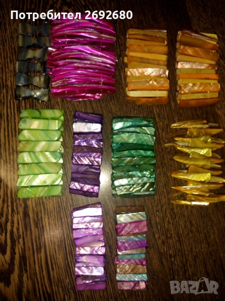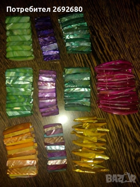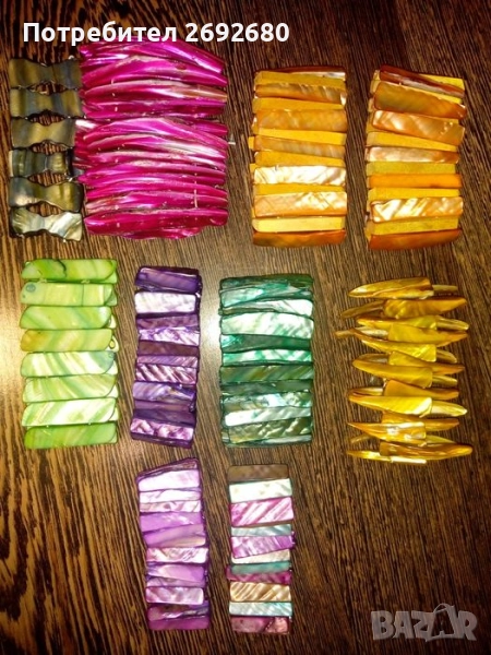 Всички останали гривни от същата снимка от долните два реда са изцяло от чист седеф, цена за 1бр. - 20лв.