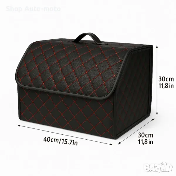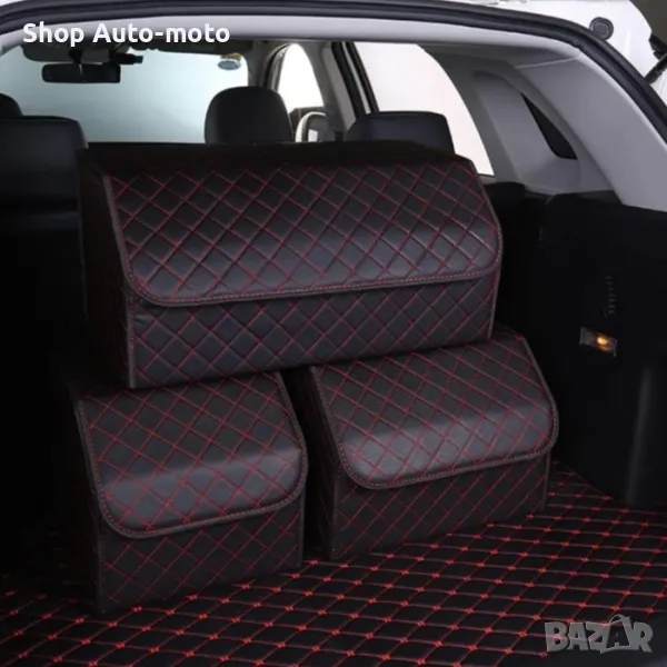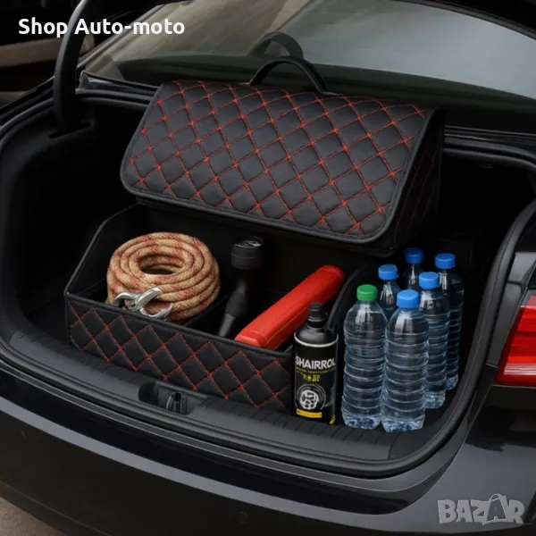Стилен кожен органайзер за багажник с червен шев 40x30x30см.