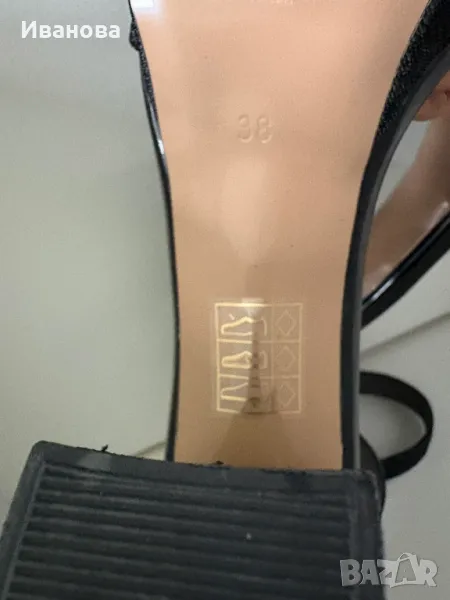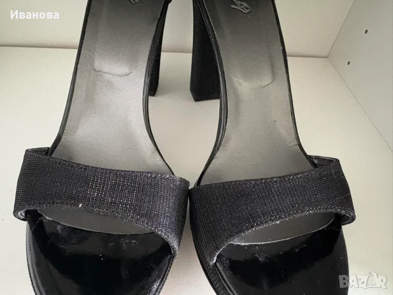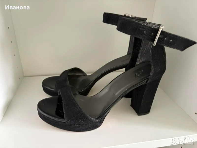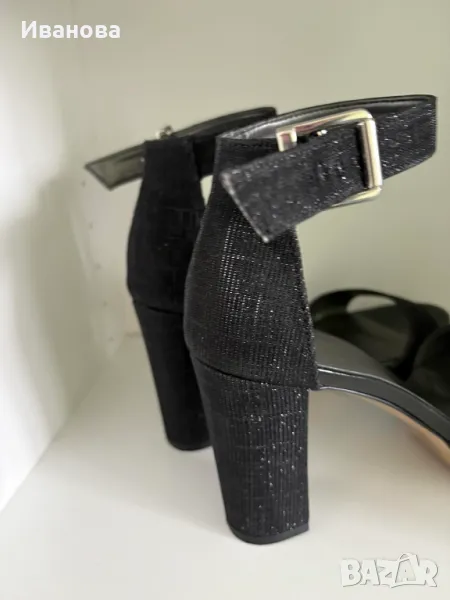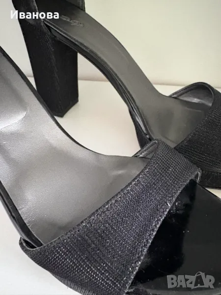 Черни токчета с каишка на глезена. Сребристо. Фина платформа → Обява 49883974