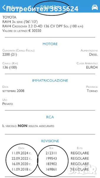 Прилагам и справка за техническите прегледи от последните 7 години в Италия - последният е на 11. 09. 2024г. на 212 311 км. !