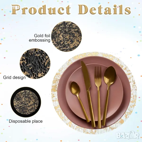 33-сантиметрови златни подложки за еднократна употреба, комплект от 12 броя, кръгли