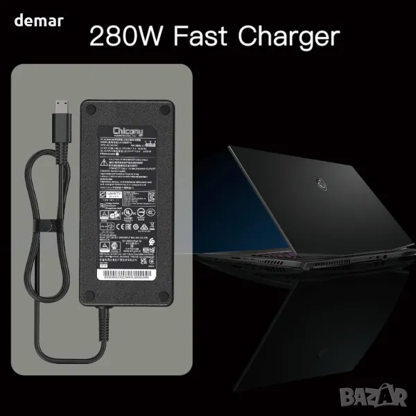 280W зарядно за лаптоп MSI Creator Z17 Z16 Raider GE66 GE78 GE76 GE68, 14A/20V AC, A18-280P1A