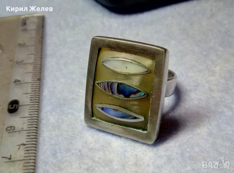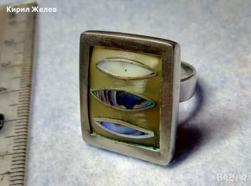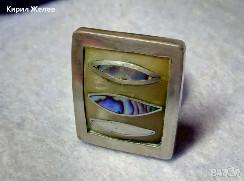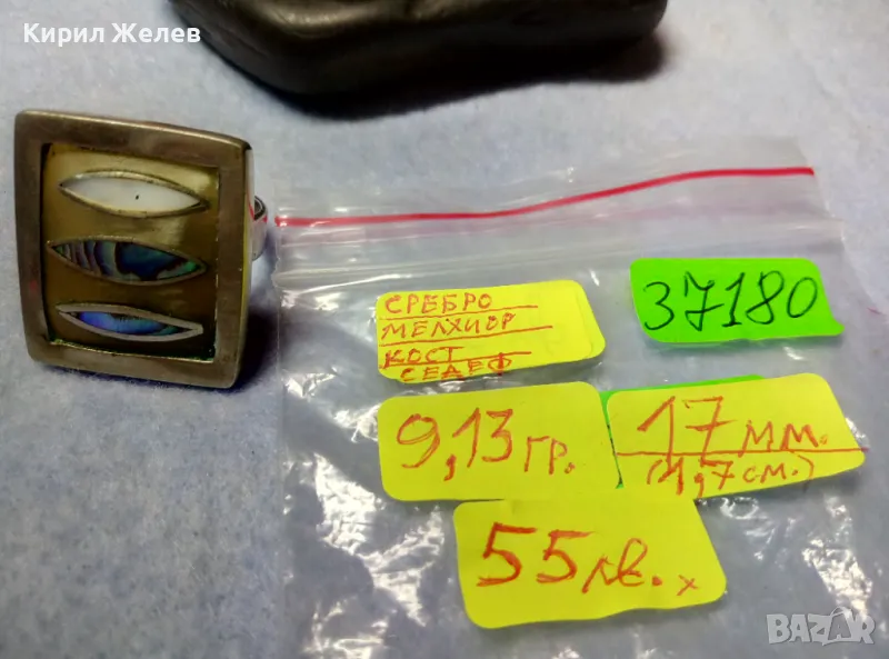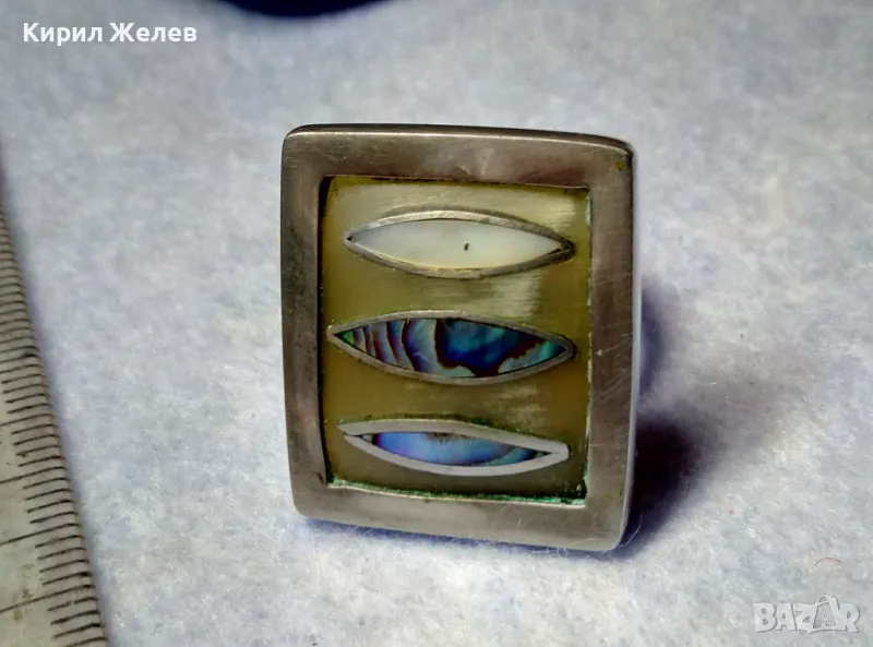 СТАР ПРЪСТЕН УНИКАТ КОСТ в МЕЛХИОНЕР ОБКОВ със СРЕБЪРЕН РИНГ и КРАЛСКИ СЕДЕФ ЧАСТ от КОМПЛЕКТ 37180