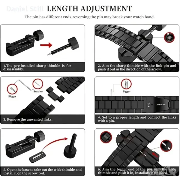 22мм Титаниева Метална Каишка с инструмент в комплекта с възможност за премахване на звена от нея до постигане на желаната дължина.