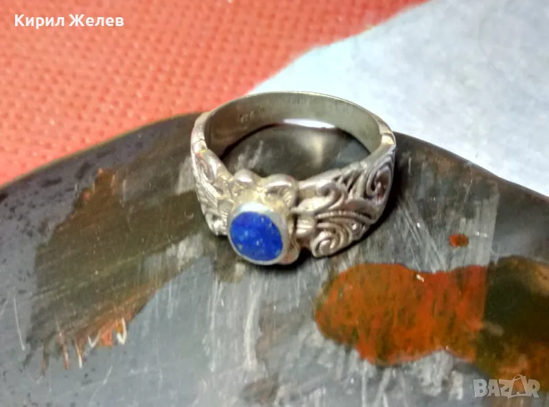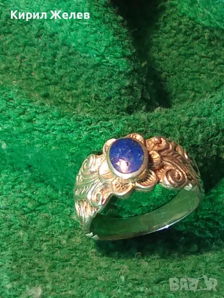 СТАРИНЕН АР НУВО ФЛОРАЛЕН СКЪПОЦЕНЕН СРЕБЪРЕН ПРЪСТЕН СРЕБРО ВИСОКА ПРОБА с ШЛИФОВАН ЛАЗУРИТ 25290